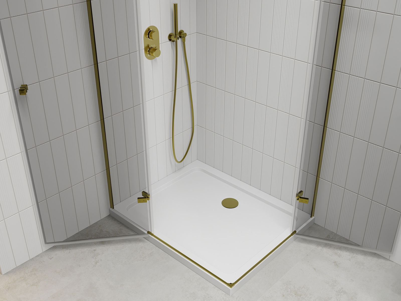 Shower enclosures, doors, and walls are standardly adapted for installation on shower trays of specific dimensions. These dimensions are provided in the product name or description. However, please note that the actual dimensions of the elements may slightly differ from the nominal values. In the case of planned installation directly on the floor, it is recommended to carefully check the external dimensions and the layout of the elements according to the technical drawing.