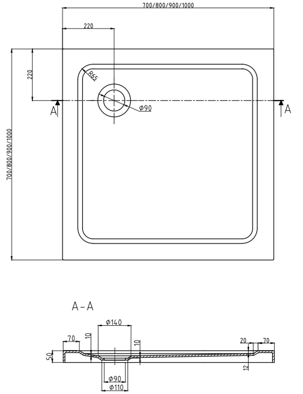 Specifications of the shower tray: