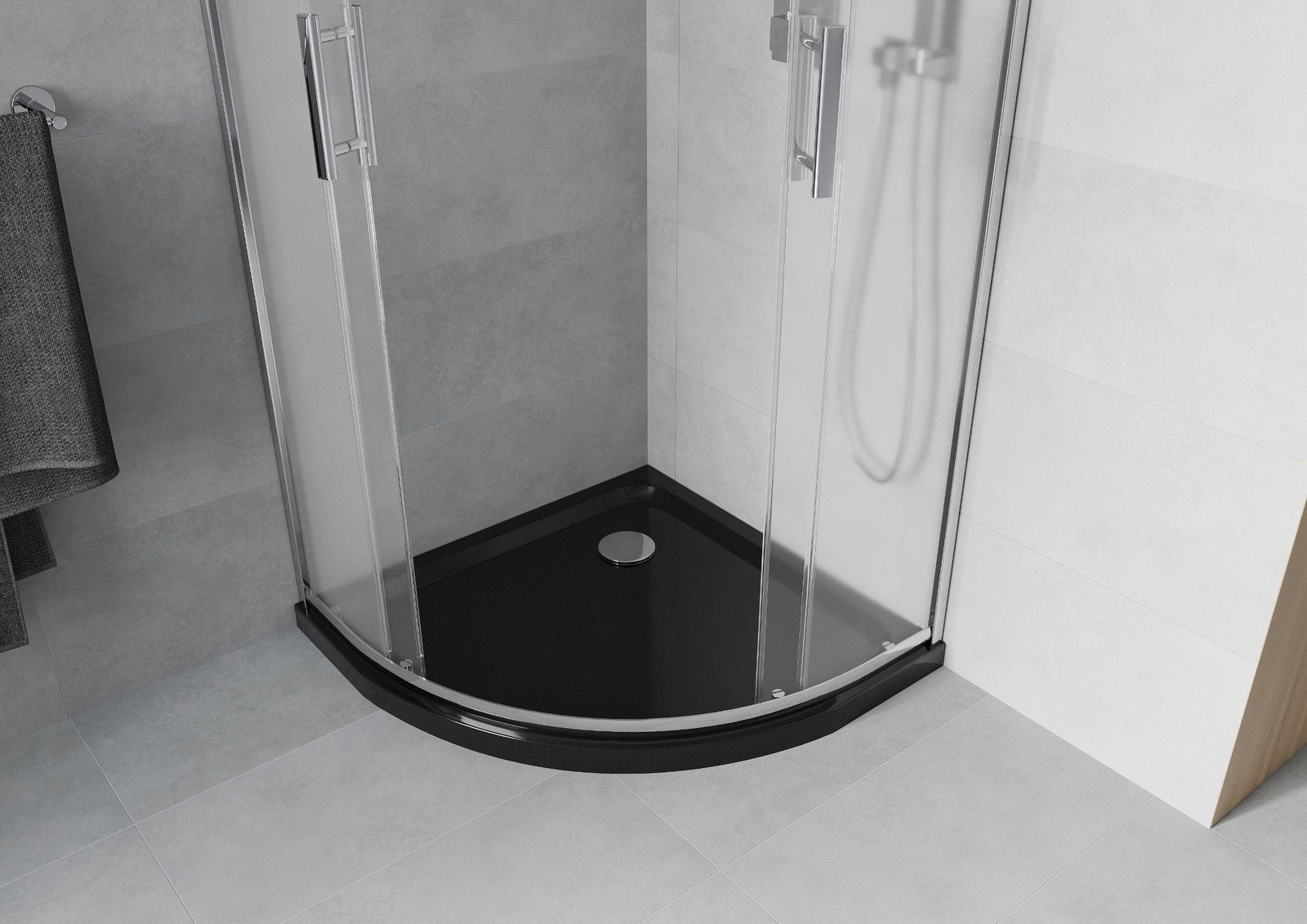 The shower tray is designed in such a way that water can freely flow towards the drain. It ensures quick and effective drainage of water from the surface of the shower tray, preventing the formation of puddles and flooding the bathroom.