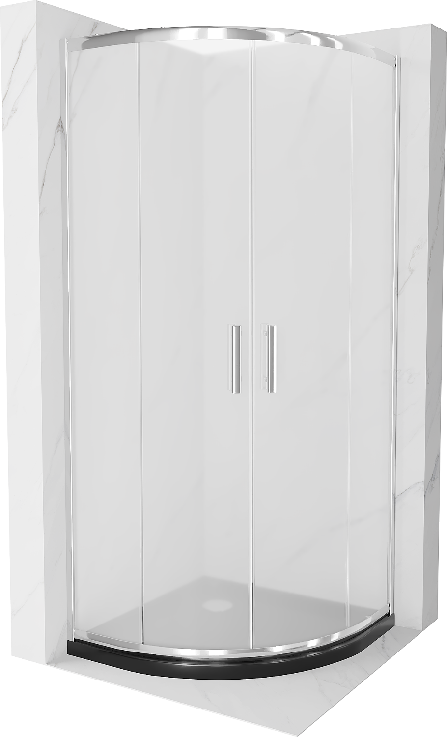 Mexen Rio Semi-Circular Shower Enclosure 90 x 90 cm, Frosted, Chrome + Flat Tray, Black - 863-090-090-01-30-4170