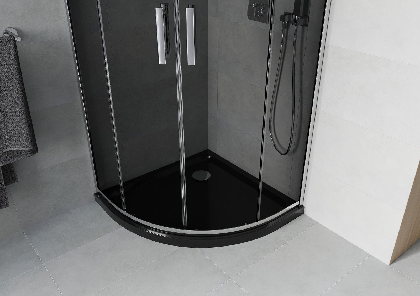 A handy and comfortable handle made from durable and resistant metal. Its trendy shape combined with a finish matched to the colour of the profiles gives the whole a modern and stylish look, highlighting the aesthetics of every bathroom.