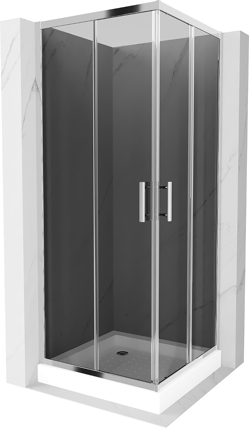 Mexen Rio Shower Enclosure Square 70 x 70 cm, Graphite, Chrome + Tray Rio, White - 860-070-070-01-40-4510