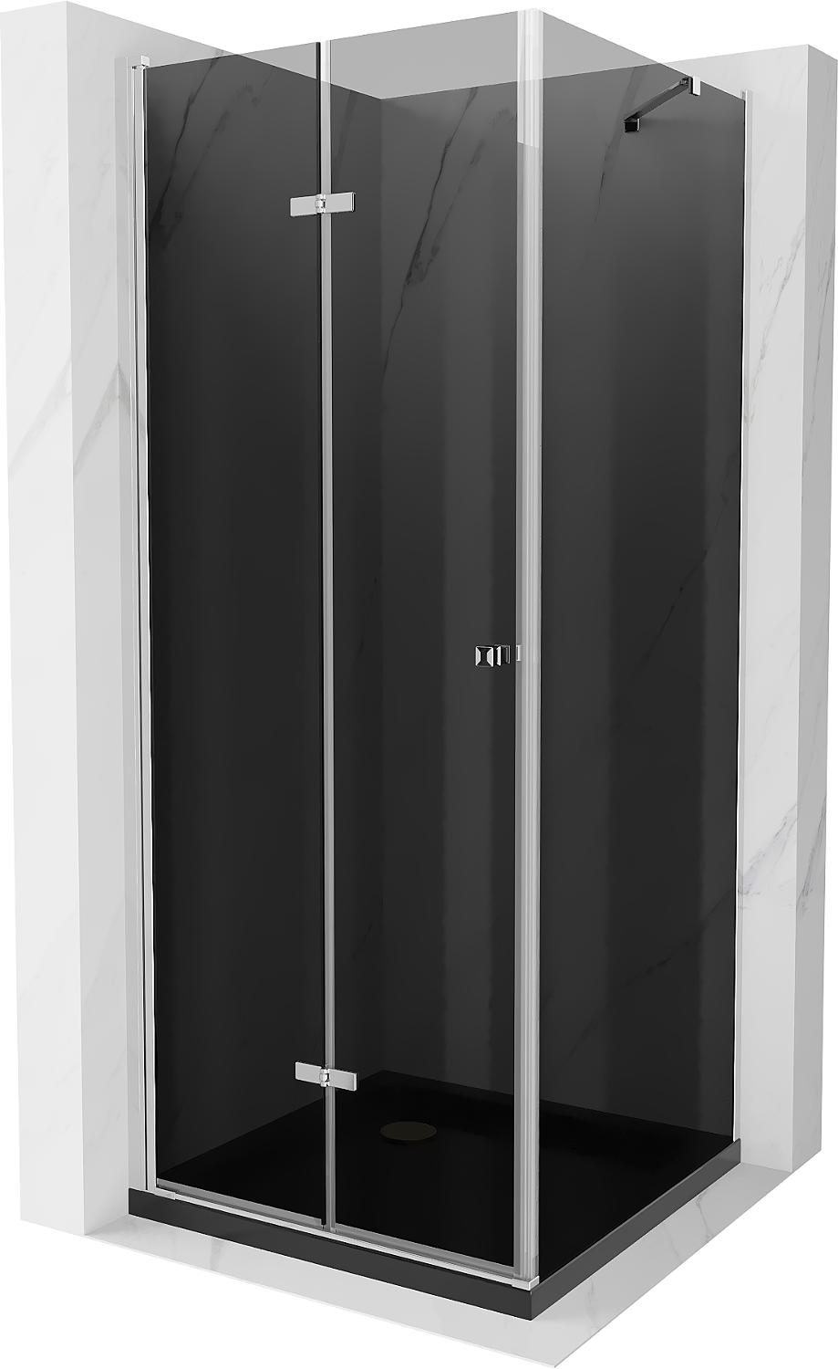 Mexen Lima folding shower enclosure 90 x 90 cm, graphite, chrome + Flat tray, black - 856-090-090-01-40-4070