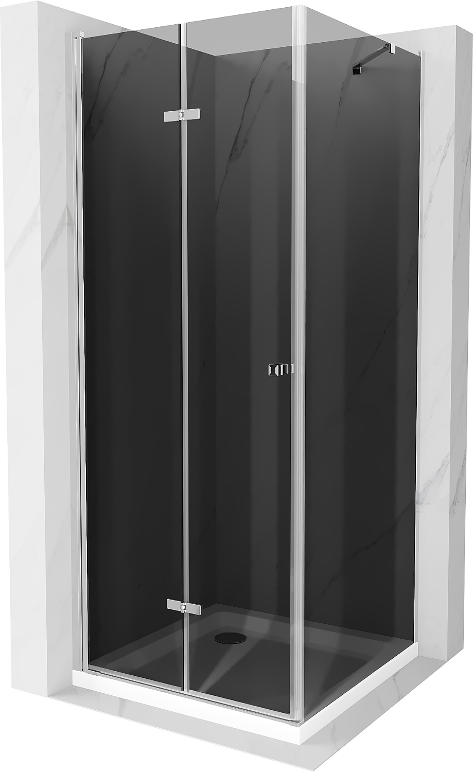 Mexen Lima foldable shower enclosure 80 x 80 cm, graphite, chrome + Flat tray, white - 856-080-080-01-40-4010