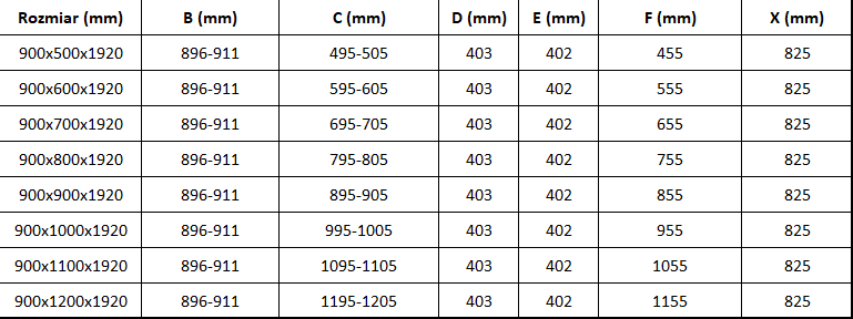 Size: 90x90 cm (door 90 cm, panel 90 cm)