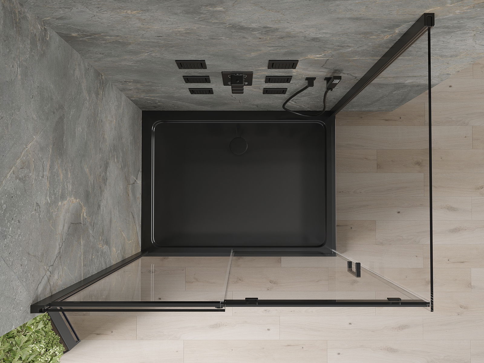 The shower tray is designed in such a way that water can freely flow towards the drain. It ensures quick and effective drainage of water from the surface of the shower tray, preventing the formation of puddles and flooding the bathroom.