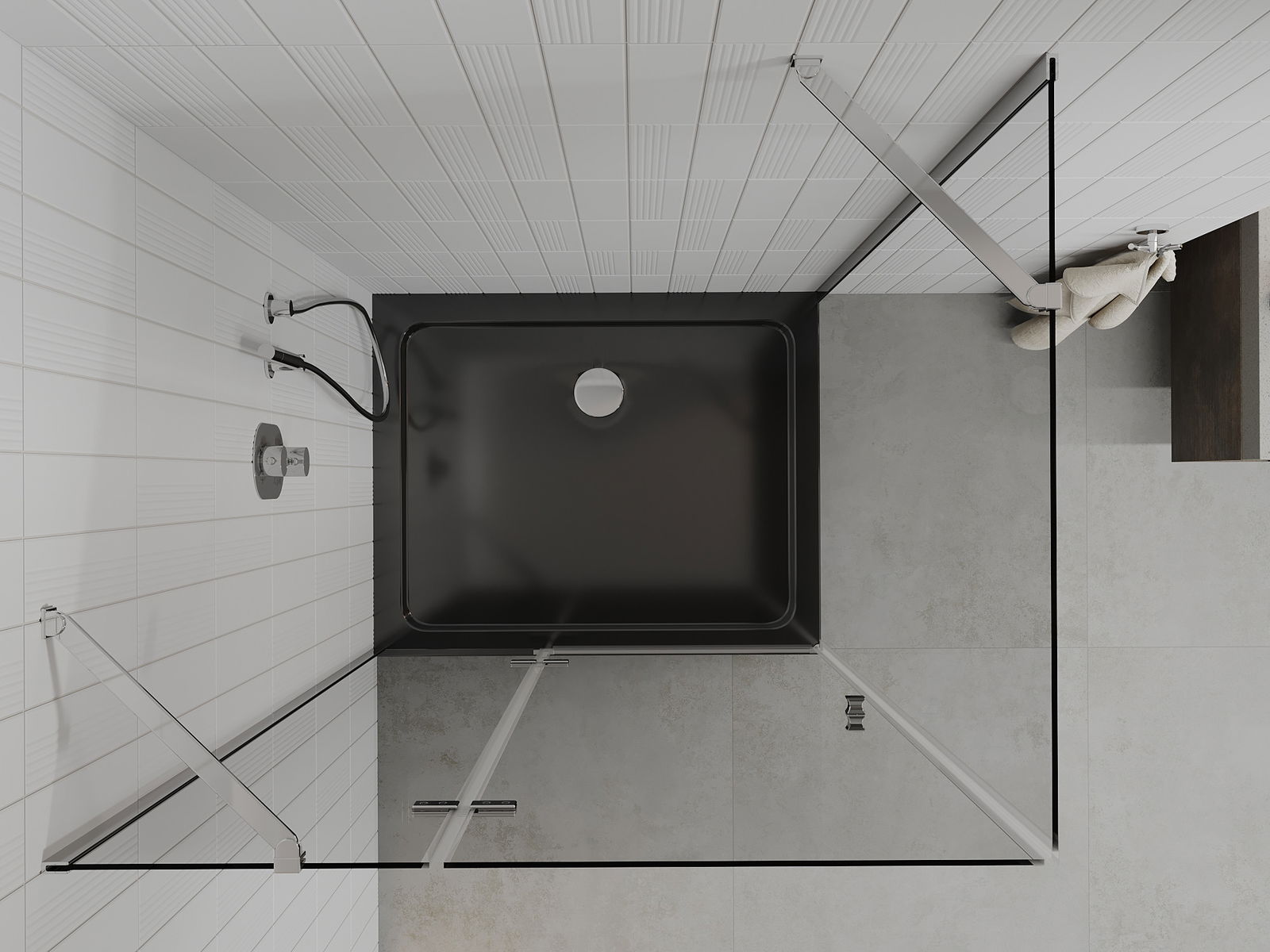 Mexen Roma hinged shower enclosure 90 x 100 cm, transparent, chrome + Flat tray, black - 854-090-100-01-00-4070