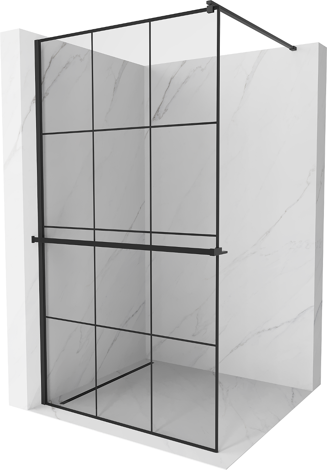 Mexen Kioto+ shower wall with shelf Walk-in 110 x 200 cm, black grid, black - 800-110-121-70-77
