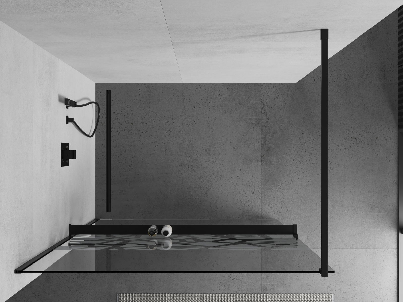 Mexen Kioto+ Walk-in Shower Wall with Shelf 70 x 200 cm, White Pattern, Black - 800-070-121-70-85