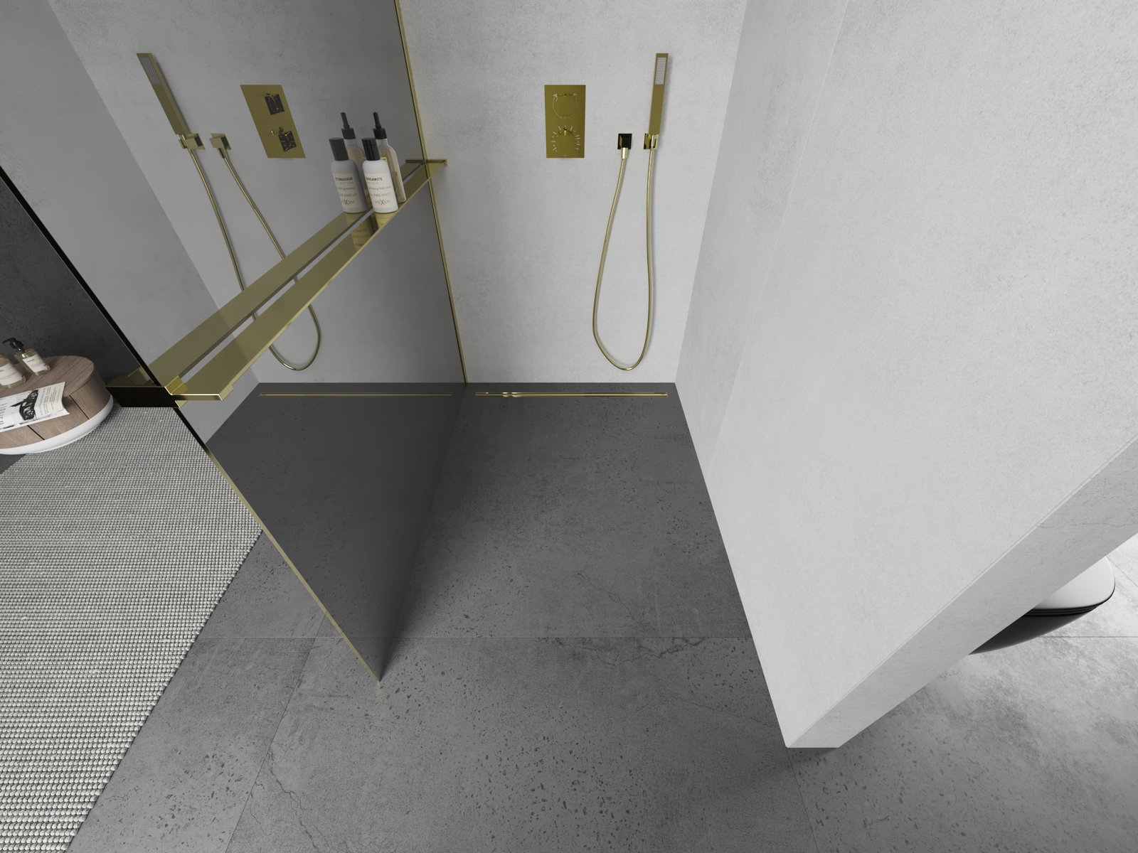 Mexen Kioto+ shower wall with Walk-in shelf 80 x 200 cm, mirror, gold - 800-080-121-50-50
