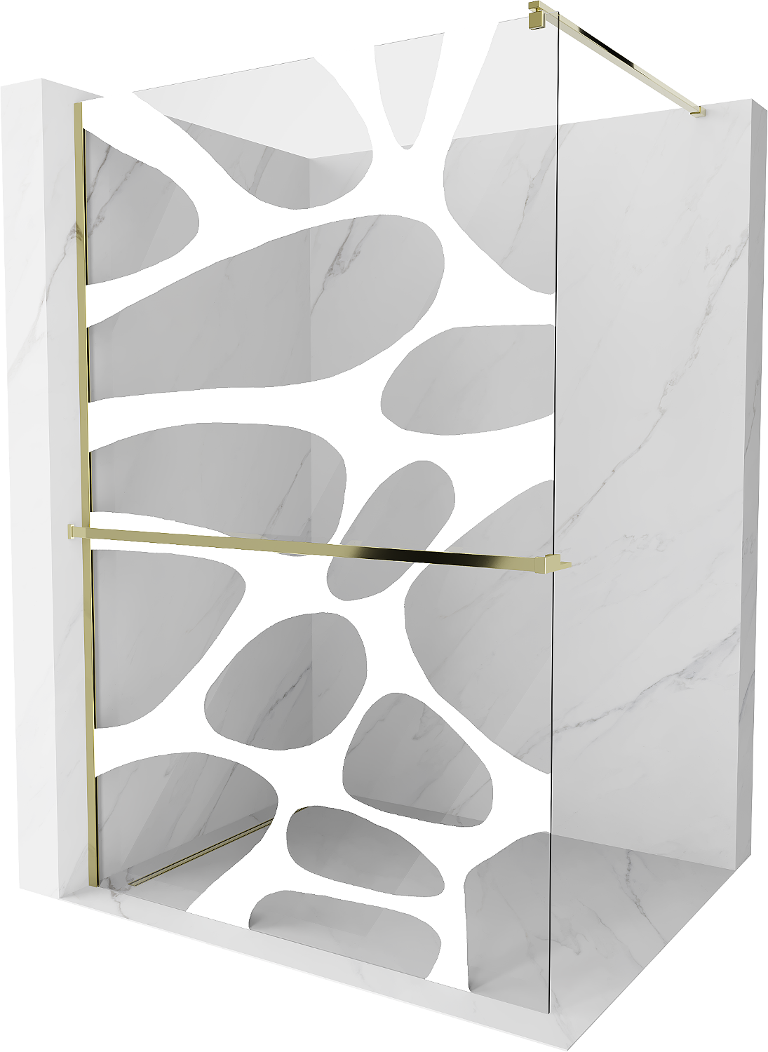Mexen Kioto+ Shower Wall with Shelf Walk-in 70 x 200 cm, White Wave, Gold - 800-070-121-50-97