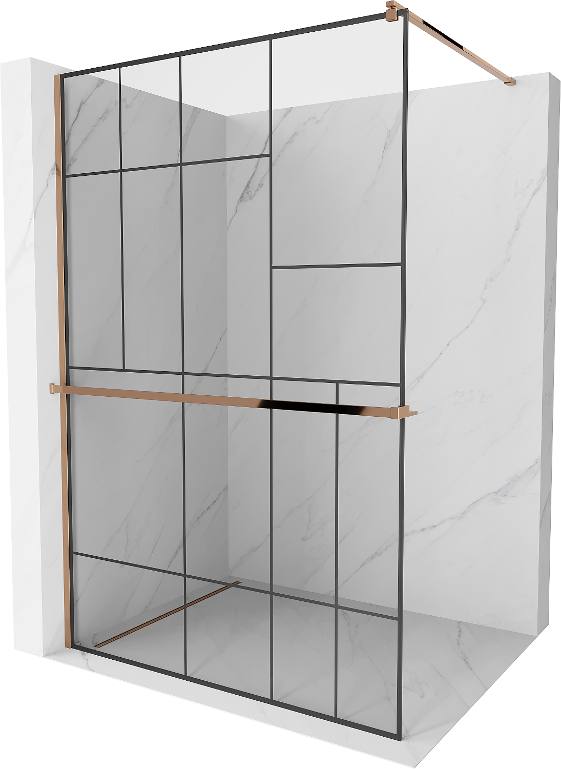 Mexen Kioto+ shower wall with shelf Walk-in 110 x 200 cm, black pattern, rose gold - 800-110-121-60-78