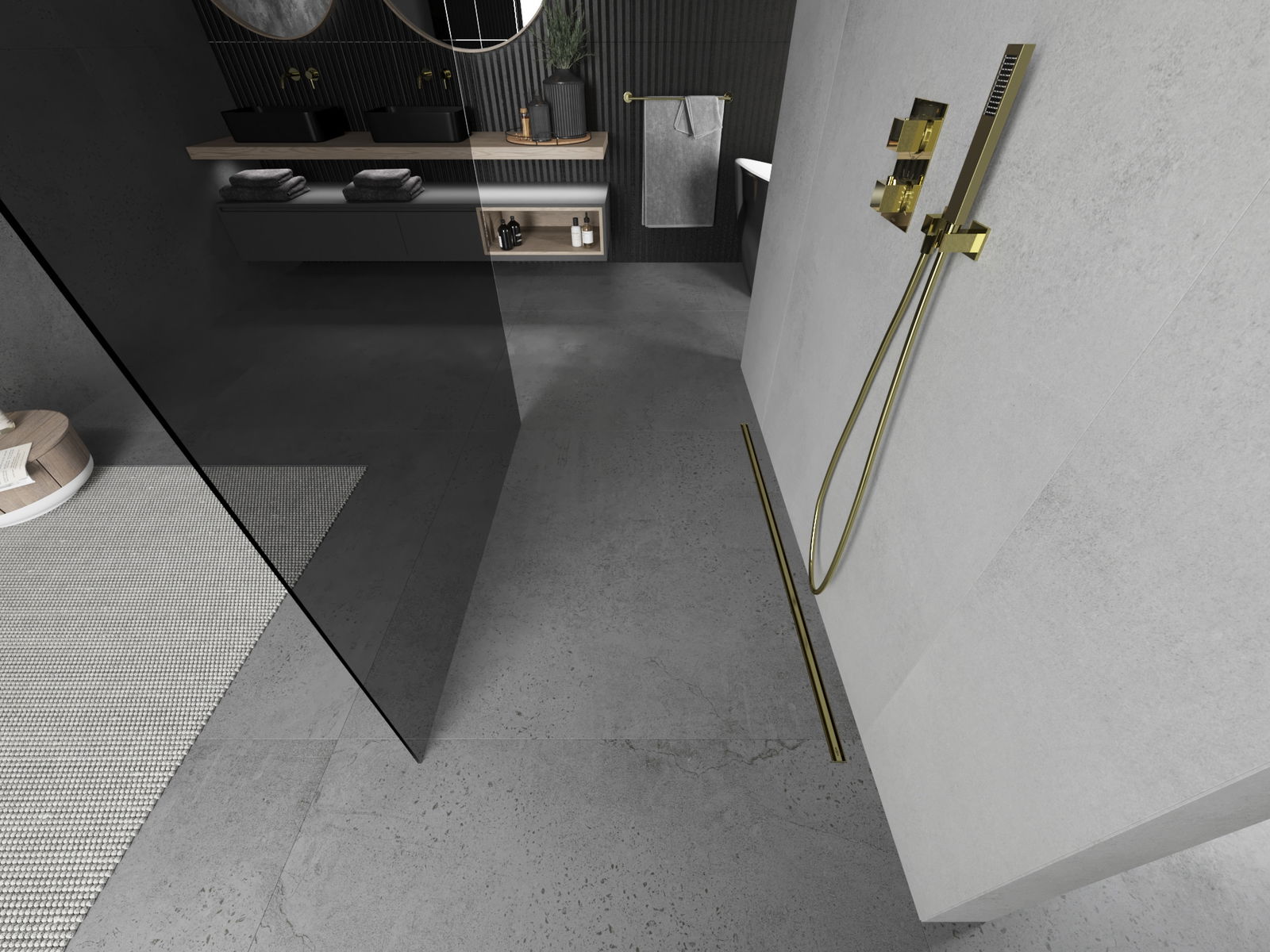 Mexen Kioto Freestanding Shower Panel 100 x 200 cm, Graphite 8 mm, Gold - 800-100-002-50-40