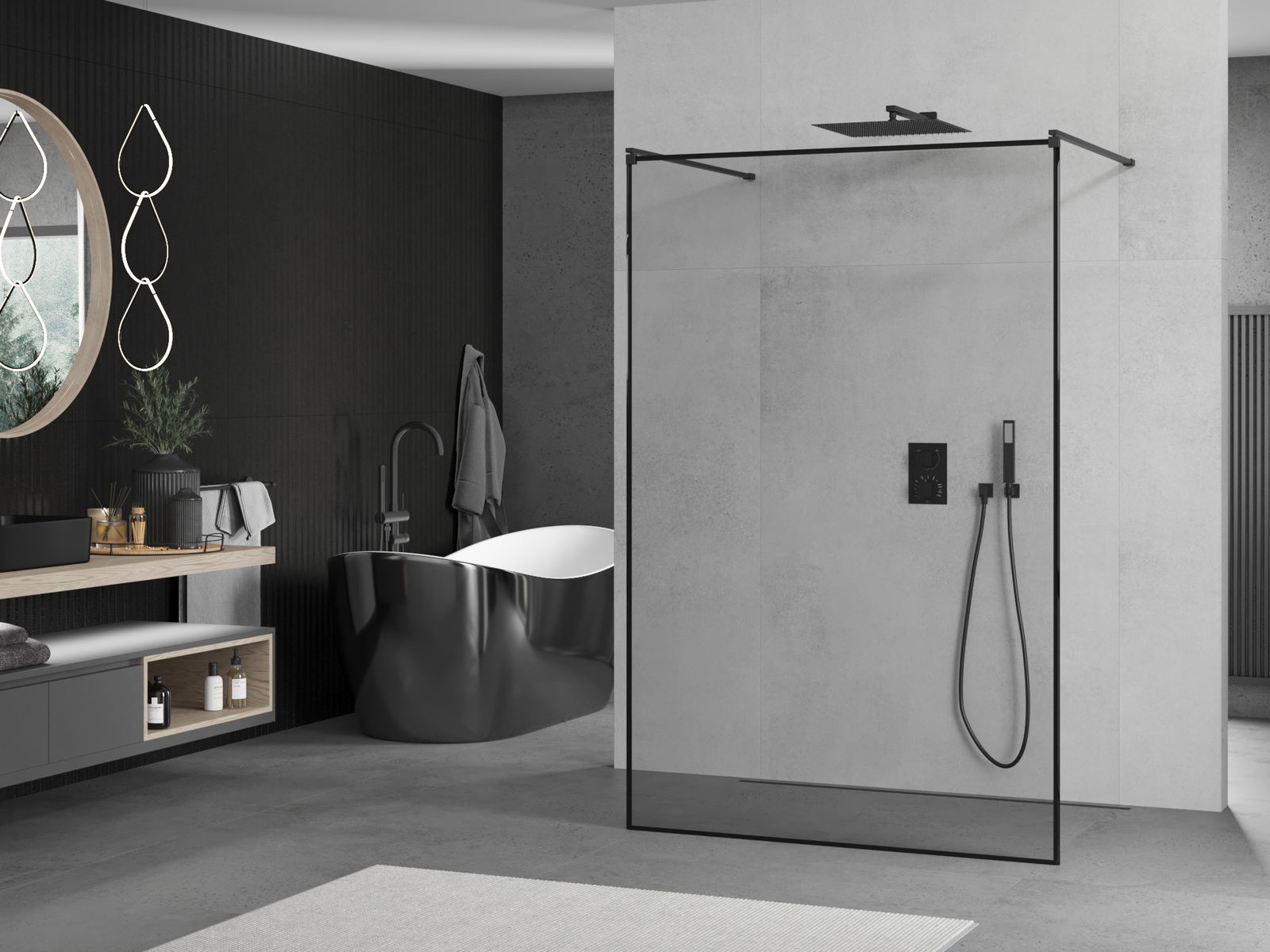Mexen Kioto freestanding shower wall 110 x 200 cm, black frame 8 mm, black - 800-110-002-70-70