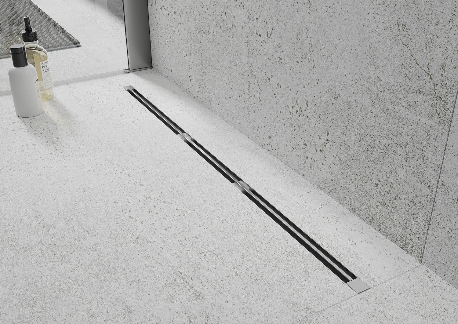 The linear drain grate is exceptionally narrow and only 31 mm wide. The thin construction perfectly fits into a modern bathroom interior, giving an impression of lightness. An excellent choice for minimalist arrangements.