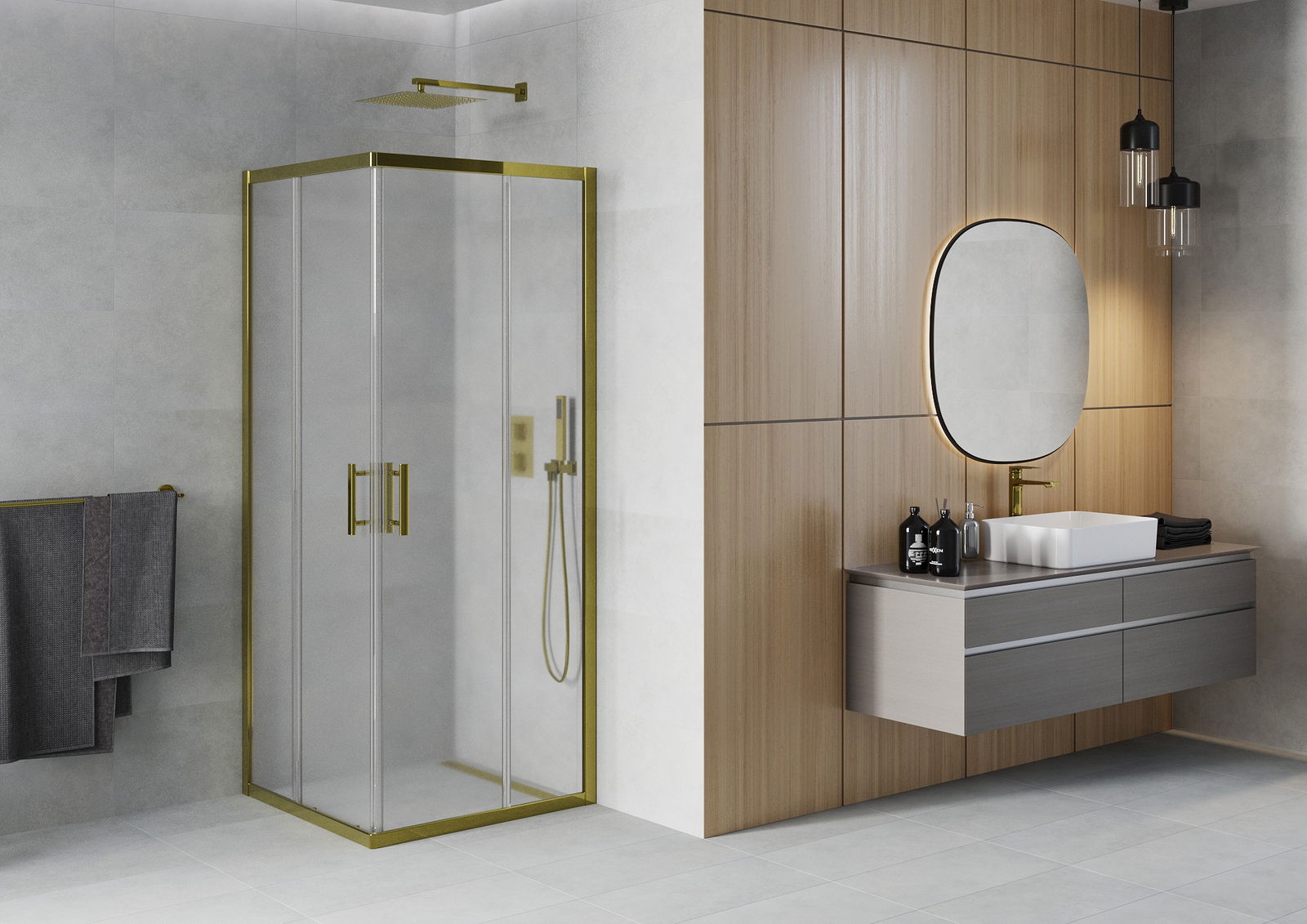 Sliding doors move along special guides and do not require additional space to open, which is why they are ideal for smaller bathrooms. Thanks to the double rollers made of durable plastic, their movement is smooth.