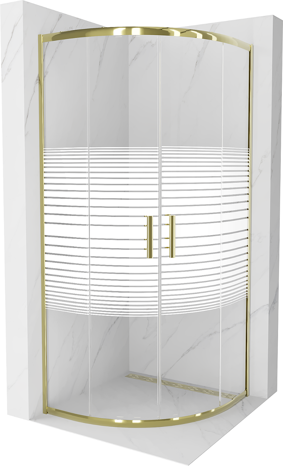 Mexen Rio semi-circular shower cabin 70 x 70 cm, white stripes, gold - 863-070-070-50-20