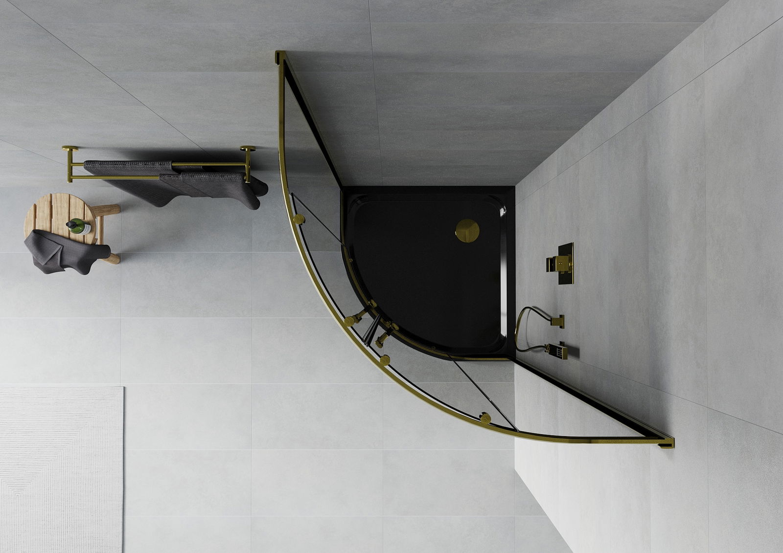 Mexen Rio semi-circular shower cabin 90 x 90 cm, graphite, gold + Flat tray, black - 863-090-090-50-40-4170G