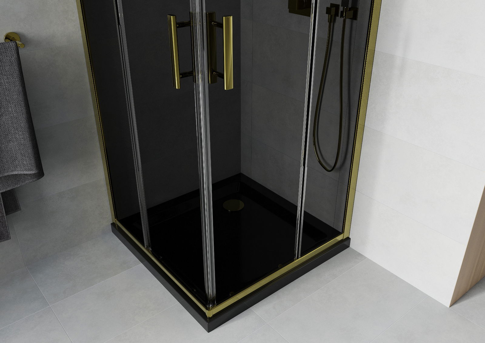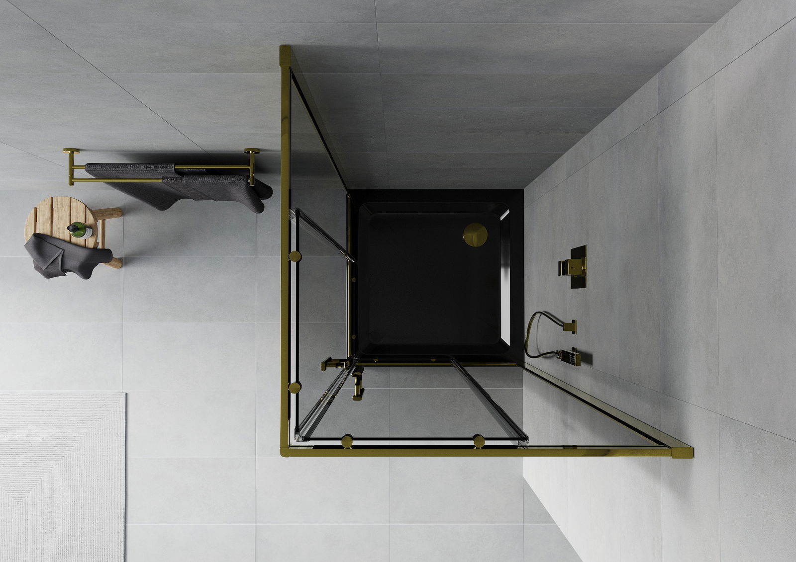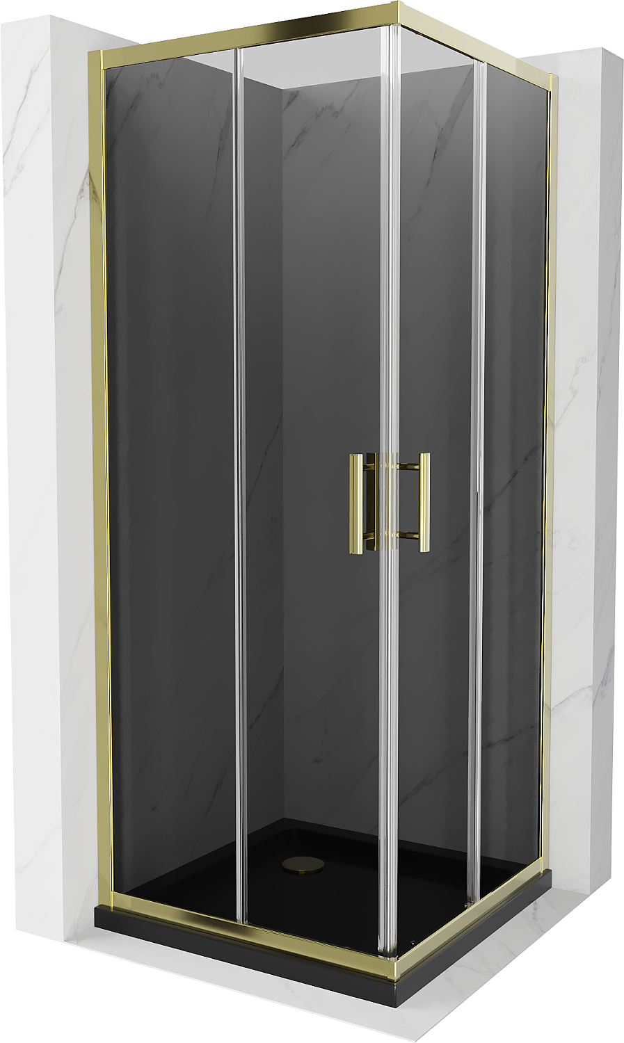 Mexen Rio Square Shower Enclosure 80 x 80 cm, Graphite, Gold + Flat Shower Tray, Black- 860-080-080-50-40-4070G