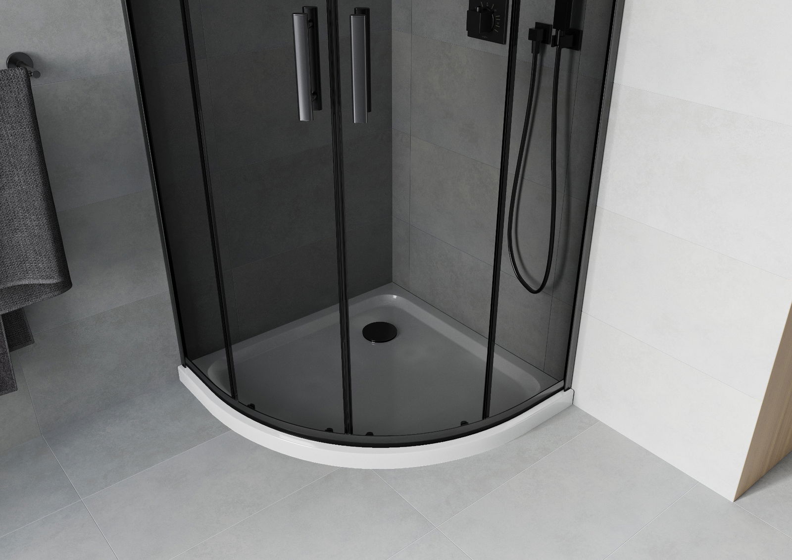 Mexen Rio semi-circular shower enclosure 80 x 80 cm, graphite, black + Flat shower tray, white - 863-080-080-70-40-4110B