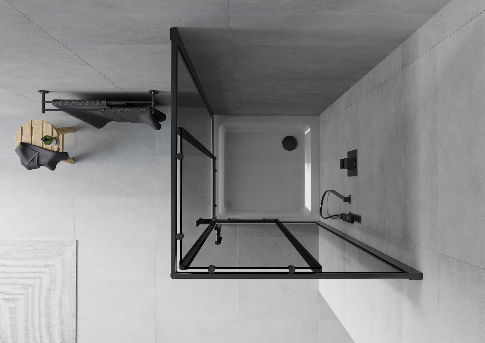 The shower tray is designed in such a way that water can freely flow towards the drain. It ensures quick and effective drainage of water from the surface of the shower tray, preventing the formation of puddles and flooding the bathroom.