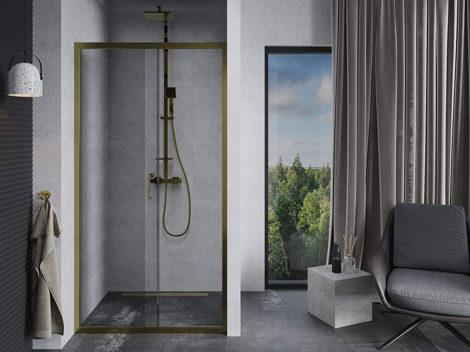Mexen Apia sliding shower door 145 cm, transparent, gold - 845-145-000-50-00