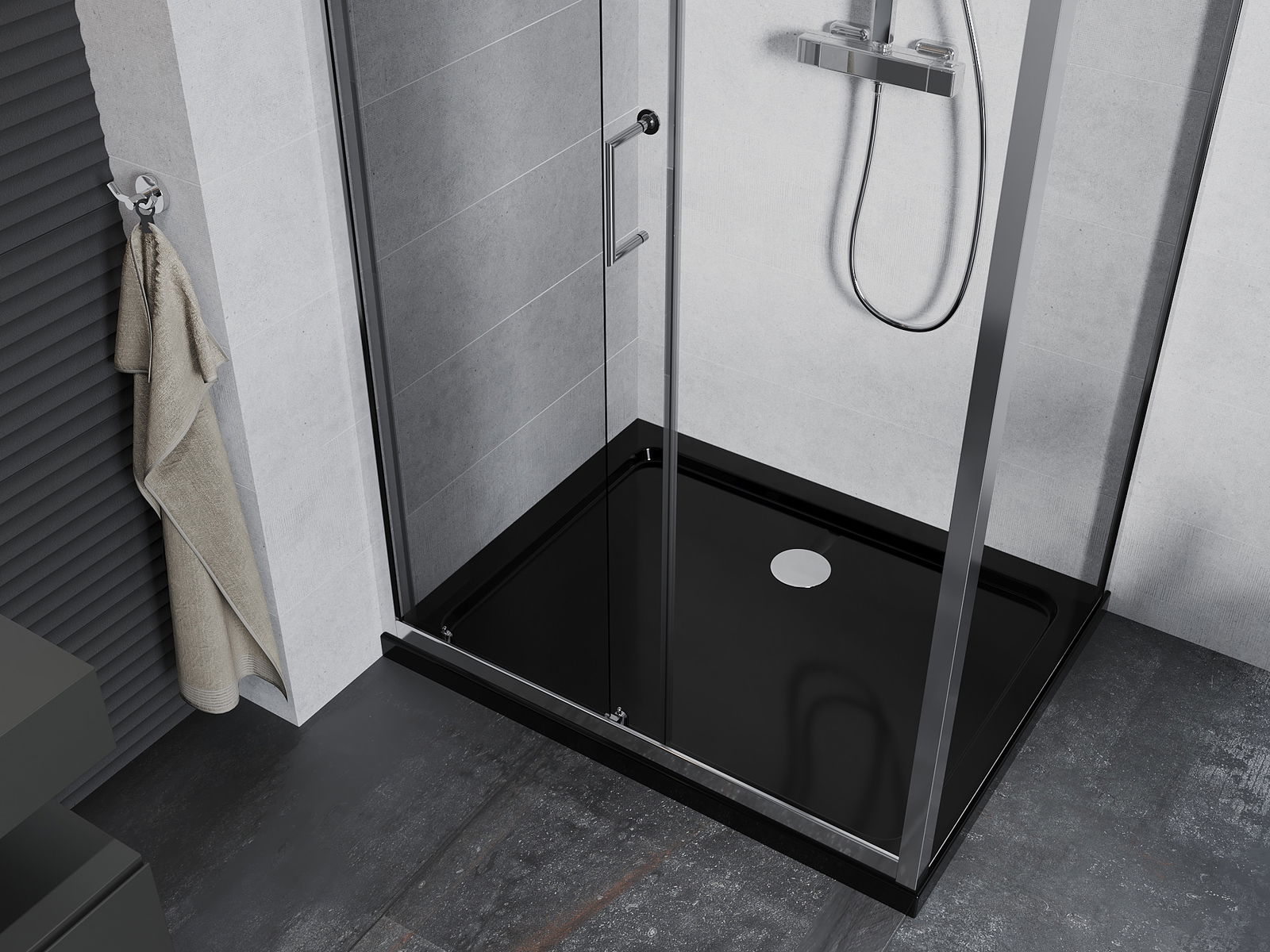 Mexen Apia sliding shower cabin 110 x 80 cm, transparent, chrome + Flat tray, black - 840-110-080-01-00-4070