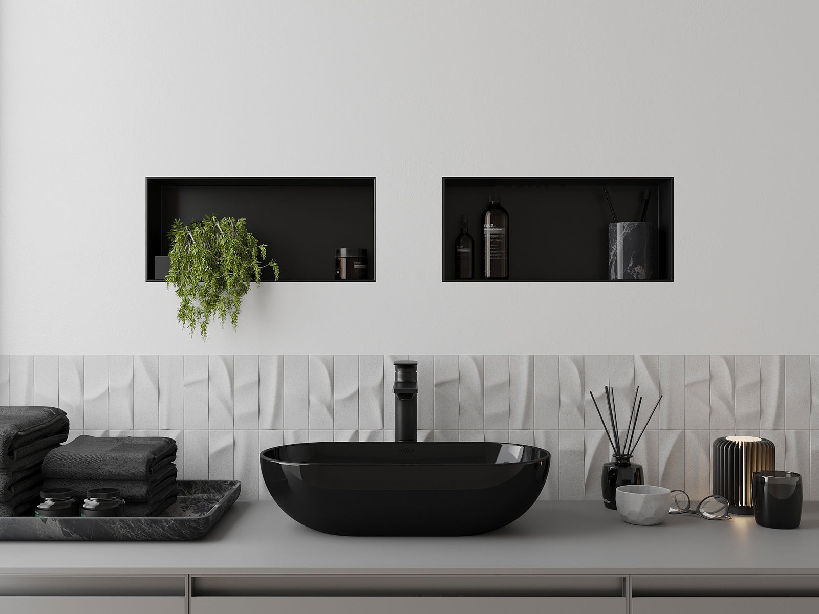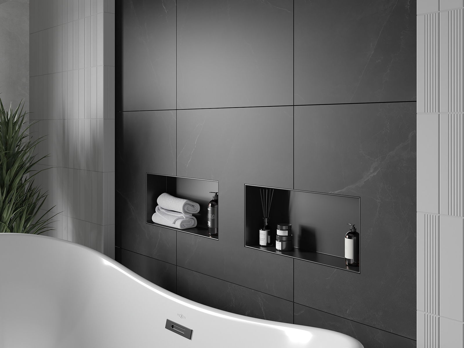 Mexen X-Wall-NR recessed shelf without flange 45 x 20 cm, black - 1971452010