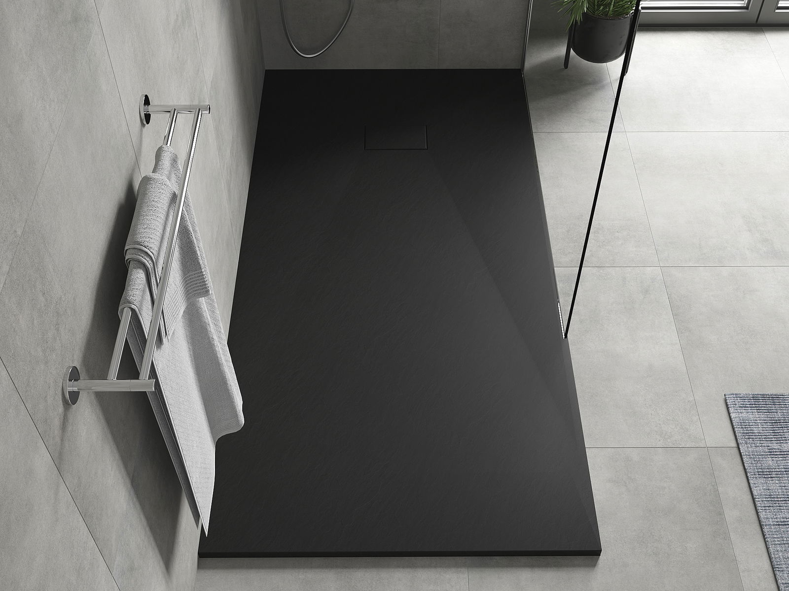 The shower tray is designed in such a way that water can freely flow towards the drain. It ensures quick and effective drainage of water from the surface of the shower tray, preventing the formation of puddles and flooding the bathroom.