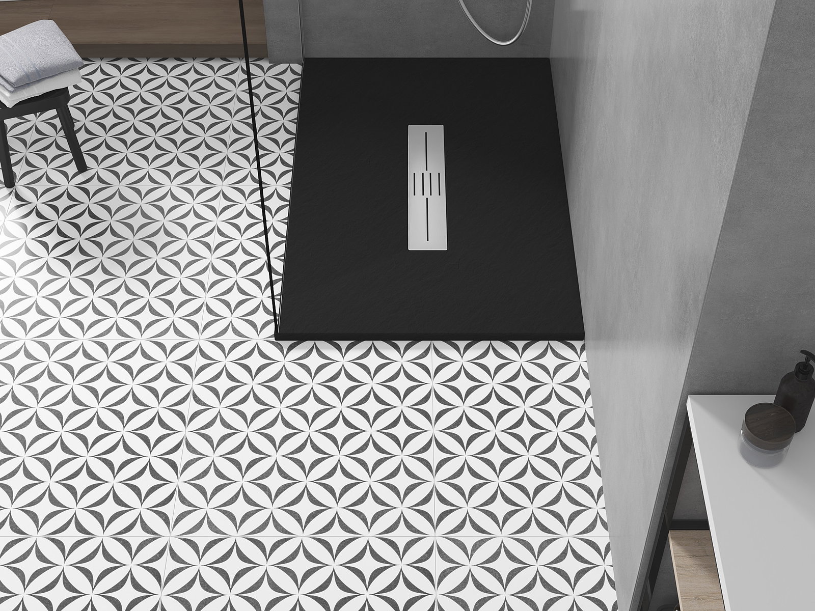 The low height of the shower tray allows for traditional installation on the floor or embedding into the floor, creating a unique, seamless surface. The flexibility of installation allows the shower tray to be adapted to different interior designs.