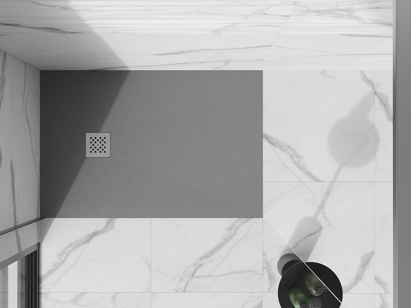 The shower tray is designed in such a way that water can freely flow towards the drain. It ensures quick and effective drainage of water from the surface of the shower tray, preventing the formation of puddles and flooding the bathroom.
