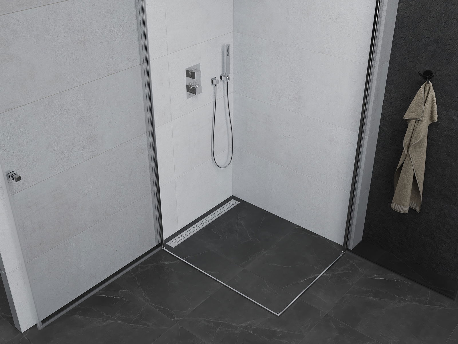 A handy and comfortable handle made from durable and resistant metal. Its trendy shape combined with a finish matched to the colour of the profiles gives the whole a modern and stylish look, highlighting the aesthetics of every bathroom.