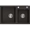 Mexen Tomas granite sink 2-bowl 800 x 500 mm, black speckled, chrome siphon - 6516802000-76