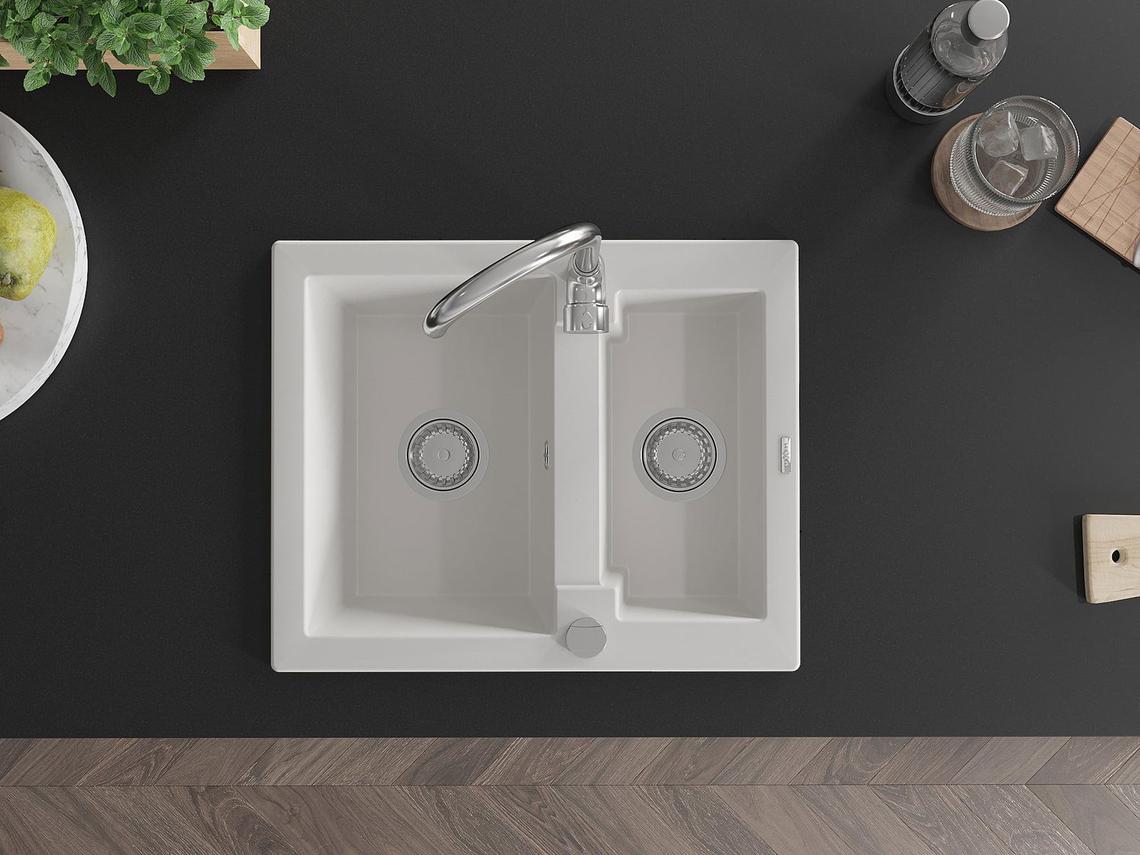 The surface of the sink is resistant to stains and discolouration, making it easy to maintain cleanliness and retain its colour for a long time of use. An aesthetic and practical addition to any kitchen.