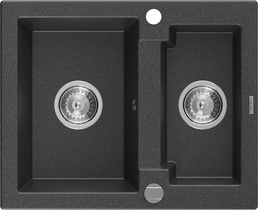 Mexen Carlos granite sink 1.5-bowl 582 x 475 mm, black speckled, chrome siphon - 6518581500-76