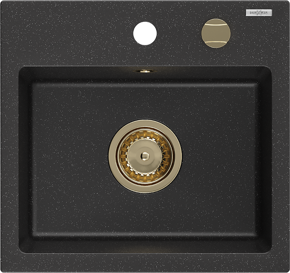 Mexen Milo granite sink 1-bowl 435 x 410 mm, black/silver metallic, gold siphon - 6505441000-73-G
