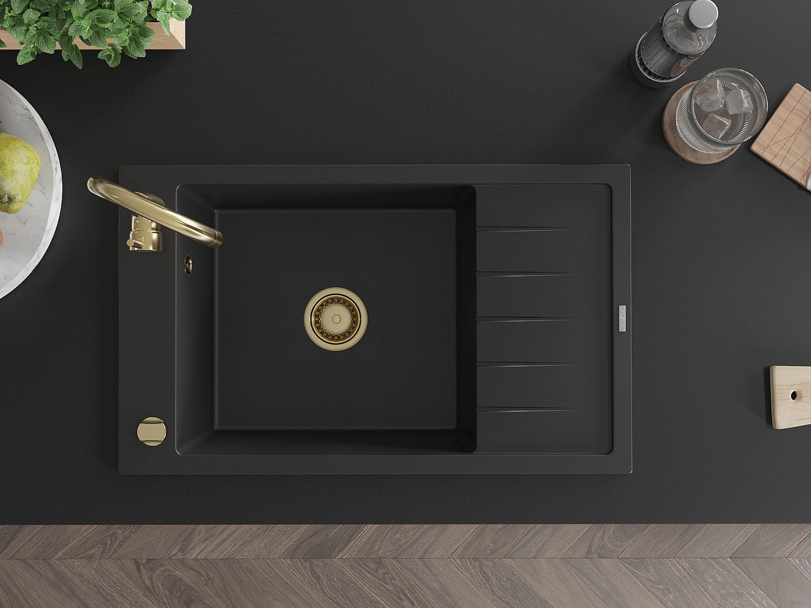 Choosing a sink with a draining board is a practical solution that allows you to set aside washed dishes or vegetables and fruits. The draining board makes daily cooking easier and helps maintain order in the kitchen.