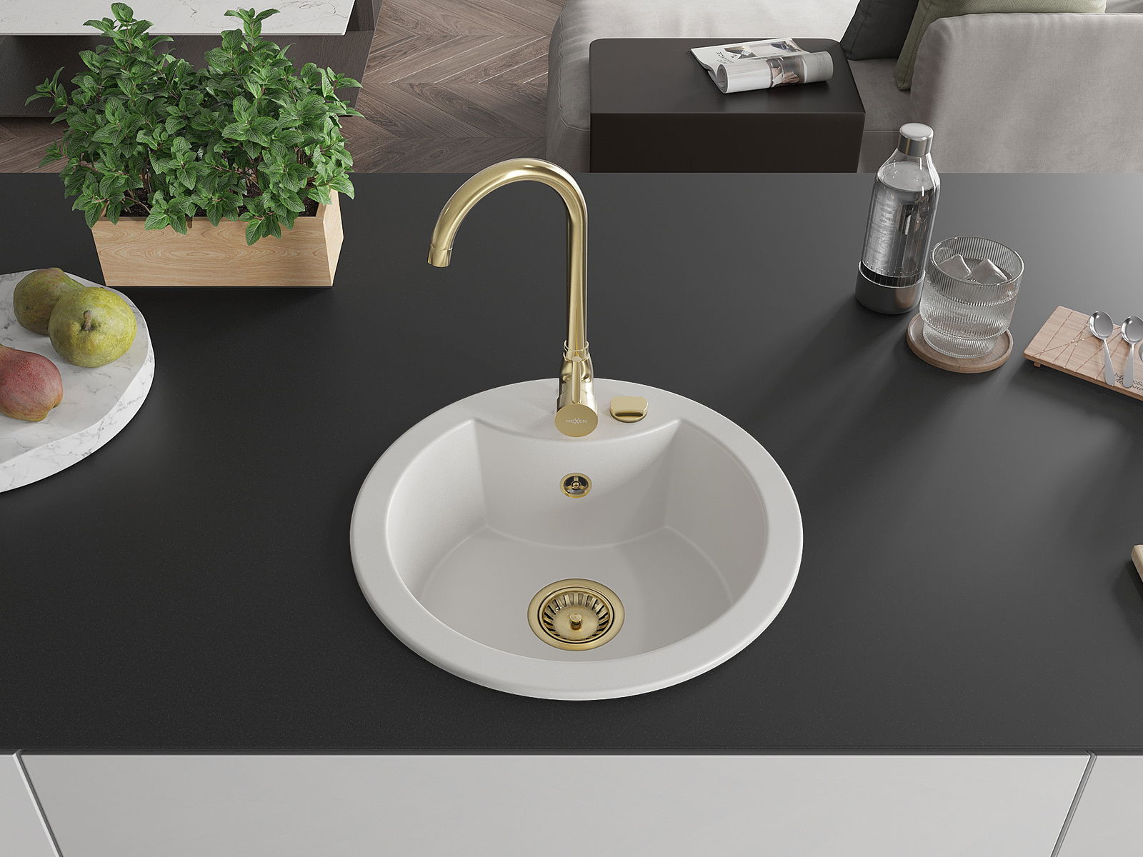 The surface of the sink is resistant to stains and discolouration, making it easy to maintain cleanliness and retain its colour for a long time of use. An aesthetic and practical addition to any kitchen.