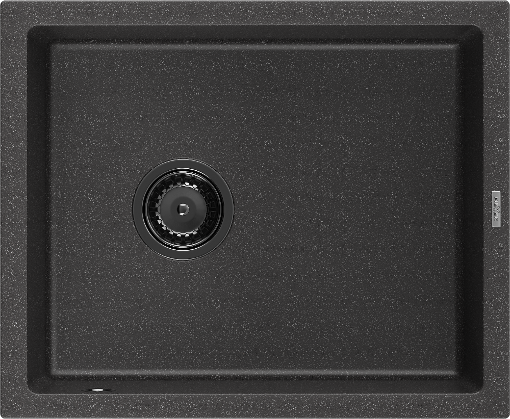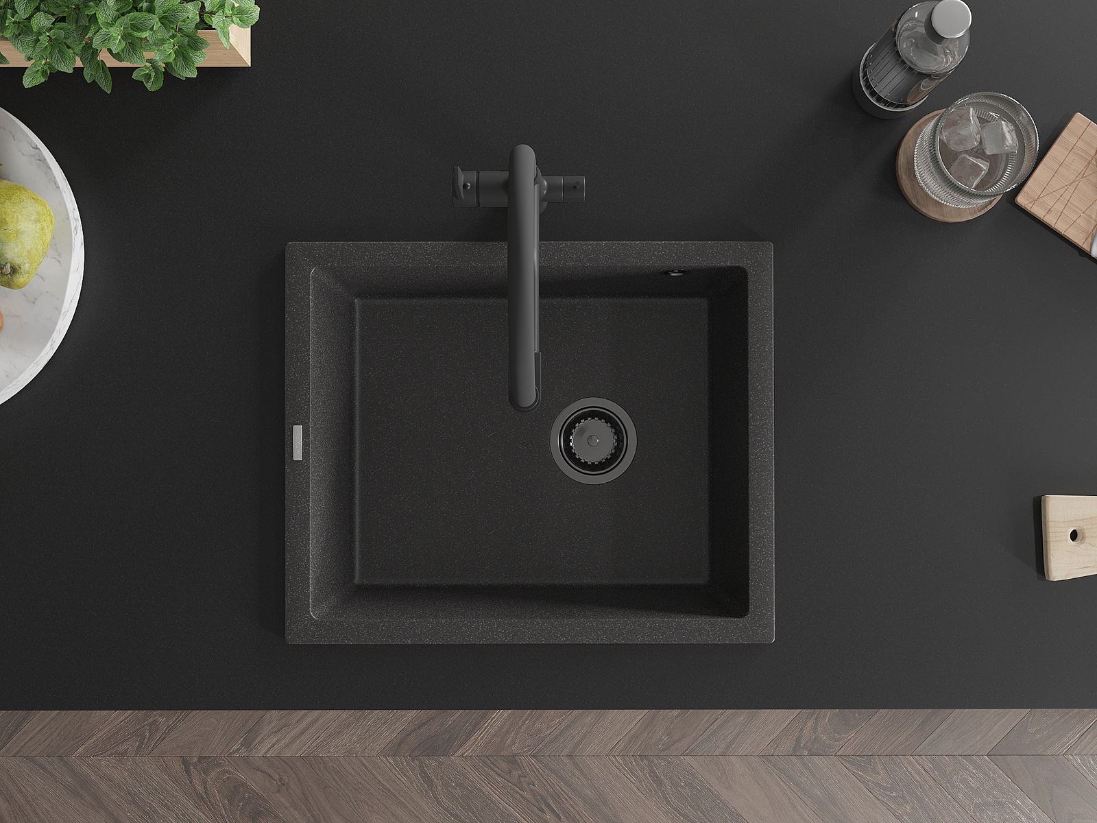 Mexen Pedro Granite Sink 1-Bowl 560 x 460 mm, Black Speckled, Black Siphon - 6508561000-76-B