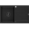 Mexen Bruno 1-bowl granite sink with drainer 795 x 495 mm, black/silver metallic, black siphon - 6513791010-73-B