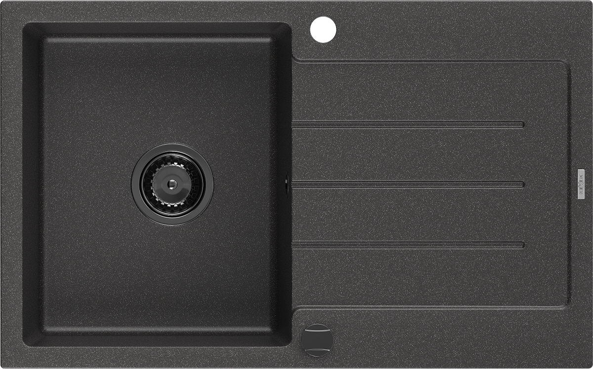 Mexen Bruno granite sink 1-bowl with drainer 795 x 495 mm, black speckled, black siphon - 6513791010-76-B