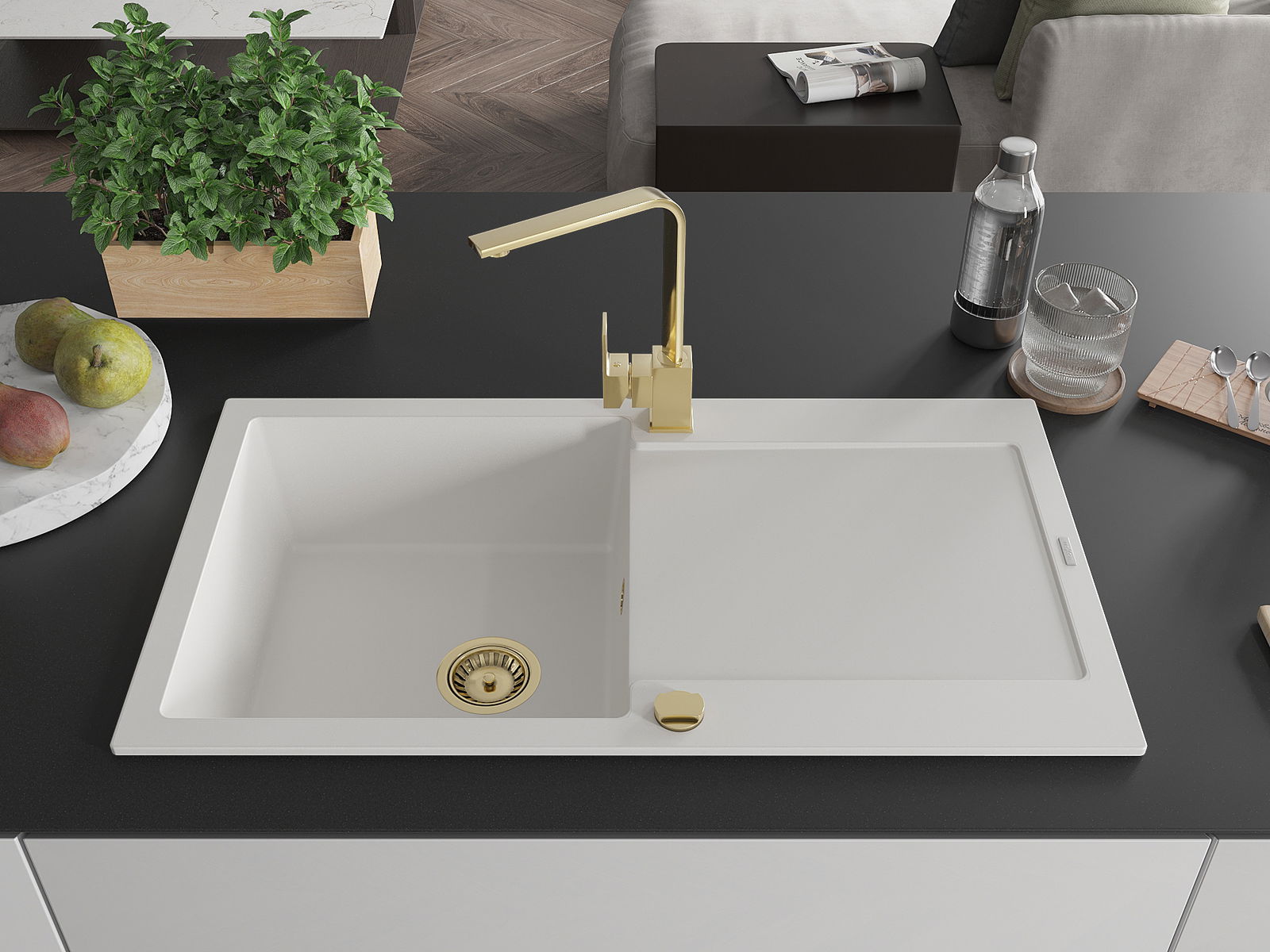 The sink is made from high-quality granite. It serves as an elegant and, above all, practical addition to any kitchen, regardless of its style. The high quality and durability of granite ensure many years of use.