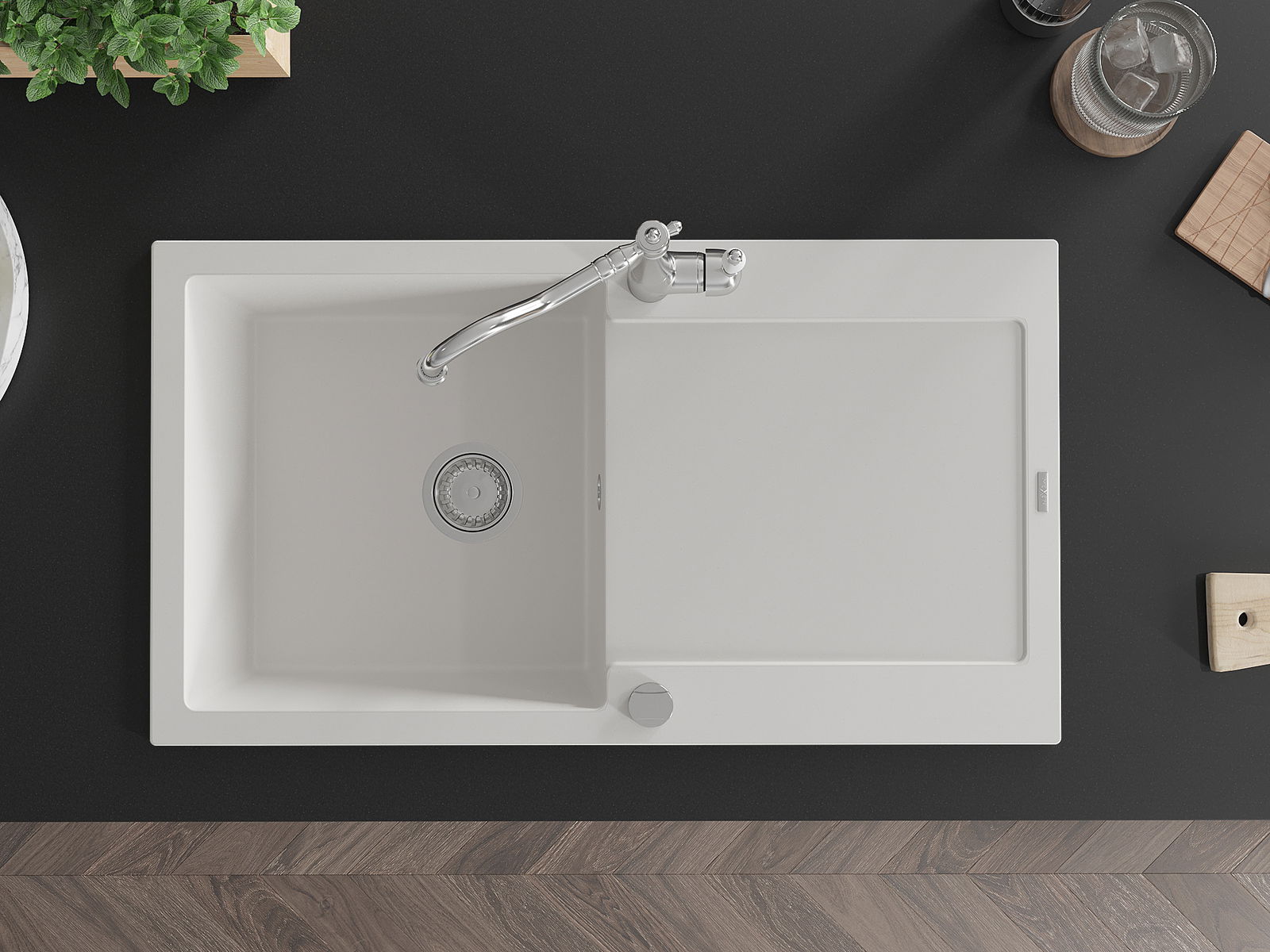 Choosing a sink with a draining board is a practical solution that allows you to set aside washed dishes or vegetables and fruits. The draining board makes daily cooking easier and helps maintain order in the kitchen.