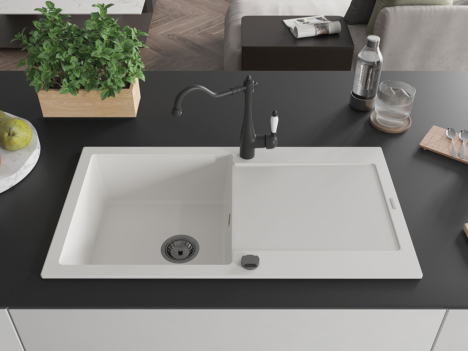 The sink is made from high-quality granite. It serves as an elegant and, above all, practical addition to any kitchen, regardless of its style. The high quality and durability of granite ensure many years of use.