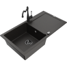 Mexen Leo granite sink 1-bowl with drainer and Carla kitchen tap, grey - 6501-71-670700-70-B