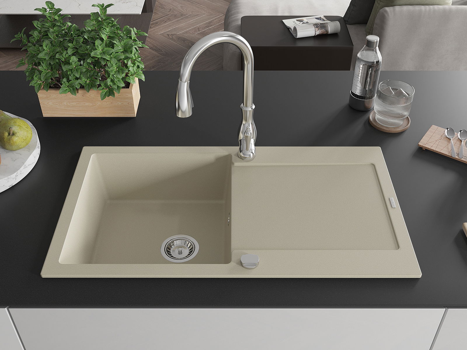 The sink is made from high-quality granite. It serves as an elegant and, above all, practical addition to any kitchen, regardless of its style. The high quality and durability of granite ensure many years of use.