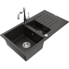 Mexen Matias granite sink 1.5-bowl with drainer and Carla kitchen tap, grey - 6502-71-670700-00