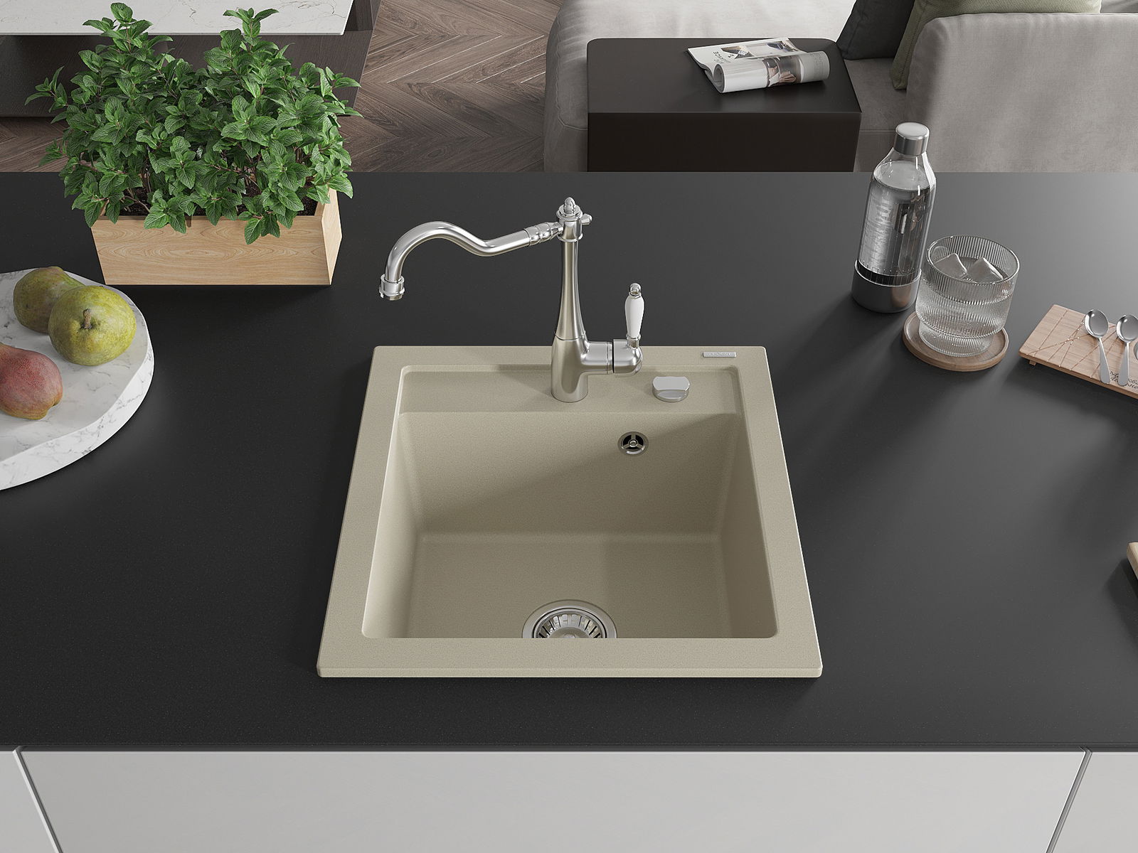 The sink is made from high-quality granite. It serves as an elegant and, above all, practical addition to any kitchen, regardless of its style. The high quality and durability of granite ensure many years of use.