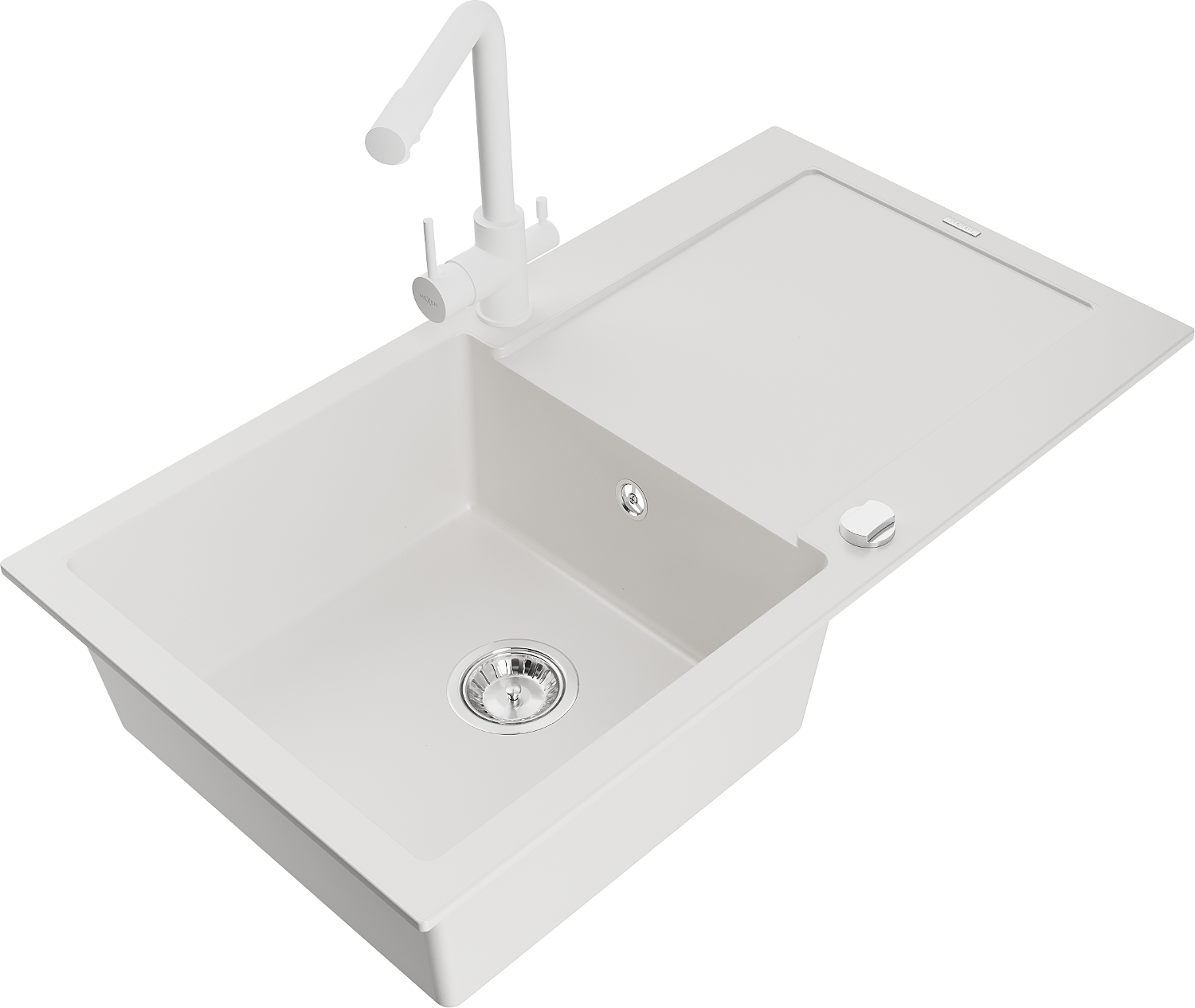 Mexen Leo granite sink 1-bowl with drainer and Duero kitchen tap, white - 6501-20-671600-20