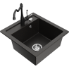 Mexen Vito 1-bowl granite sink with Carla kitchen tap, black/silver metallic - 6503-73-670700-70